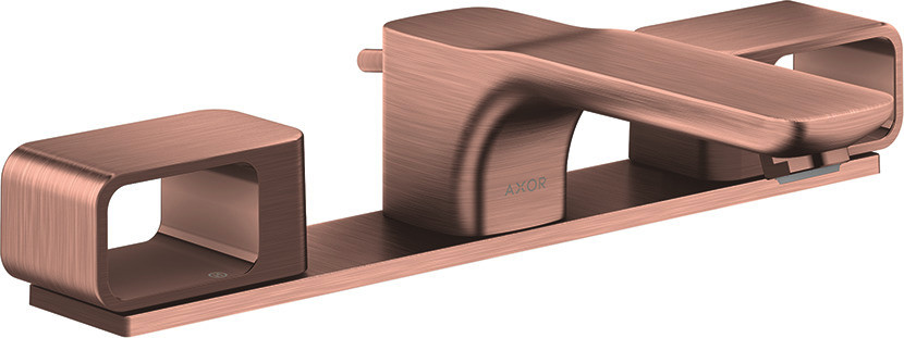 hansgrohe 3-Loch-Waschtischarmatur 50 Axor Urquiola Ausladung 180mm, mit Zugstangen-Ablaufgarnitur, Platte, brushed red gold