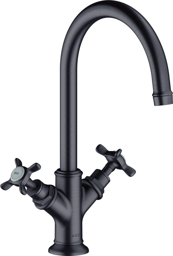 hansgrohe 2-Griff-Waschtischarmatur 210 Axor Montreux Ausladung 175mm, mit Kreuzgriffen, unverschließbare Ablaufgarnitur, brushed black chrome