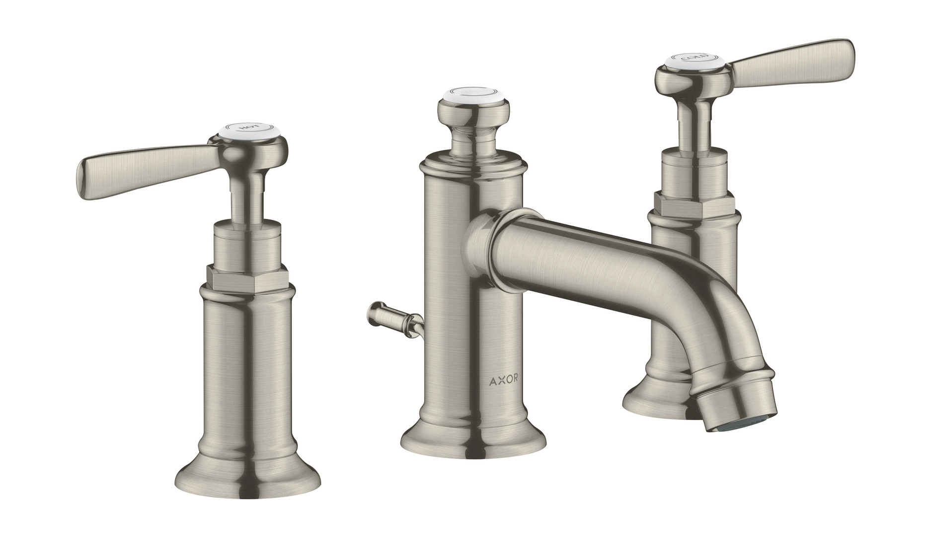 hansgrohe 3-Loch-Waschtischarmatur 30 Axor Montreux Ausladung 143mm, mit Hebelgriffe, Zugstangen-Ablaufgarnitur, Edelstahl-Optik