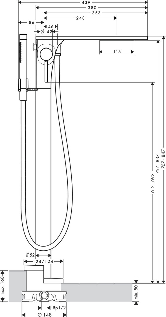 bestehend aus Einhebel-Wannenmischer bodenstehend, Stabhandbrause, Brauseschlauch, Brausehalter, Ausladung 248 mm, Anschlussart Grundkörper, Strahlart Armatur Schwallstrahl, Strahlart Handbrause Rain, Mono, max. Durchflussmenge bei 3 bar 17 l/min, Durchfluss für Wanneneinlauf bei 3 bar 17 l/min, Durchfluss für Handbrause bei 3 bar 14 l/min, Mindestfließdruck 1 bar, Keramikmischsystem, Betriebsdruck min. 1/max. 10 bar, Temperaturbegrenzung einstellbar, Umsteller mit automatischer Rückstellung, Rückflussverhinderer, Anschlussgröße DN 15, Quick Clean Antikalksystem