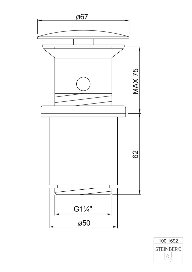 Steinberg Ablaufgarnitur Serie 100 mit Druckverschluss, für Waschtische ohne Überlauf, chrome ST1001691