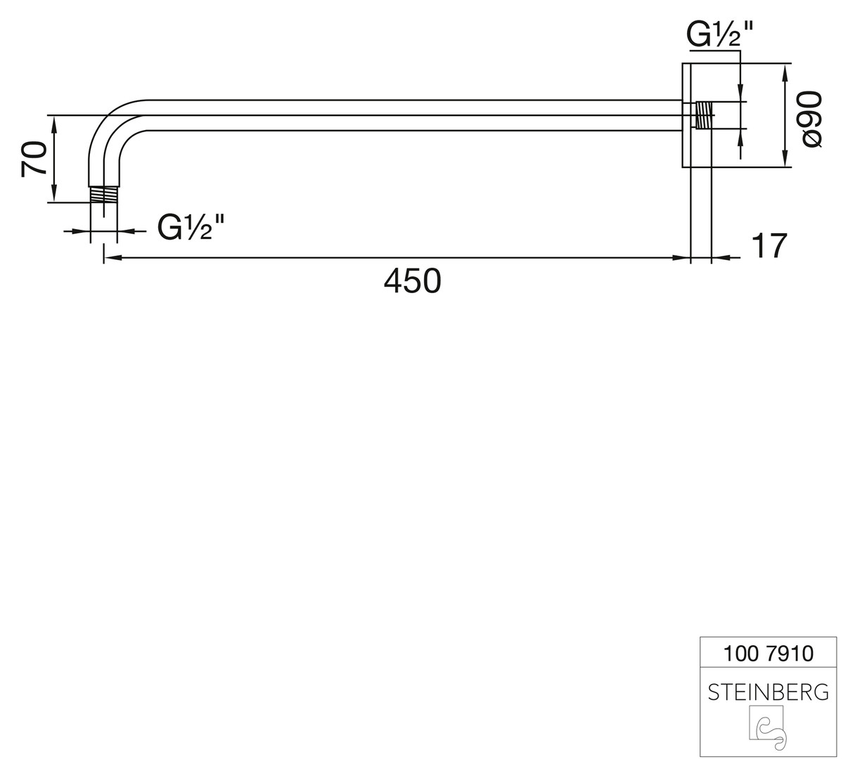 Steinberg Brausearm Serie 100 rund, Wandmontage, 450 mm, mit verstärkter Wandhalterung, chrome ST1007910