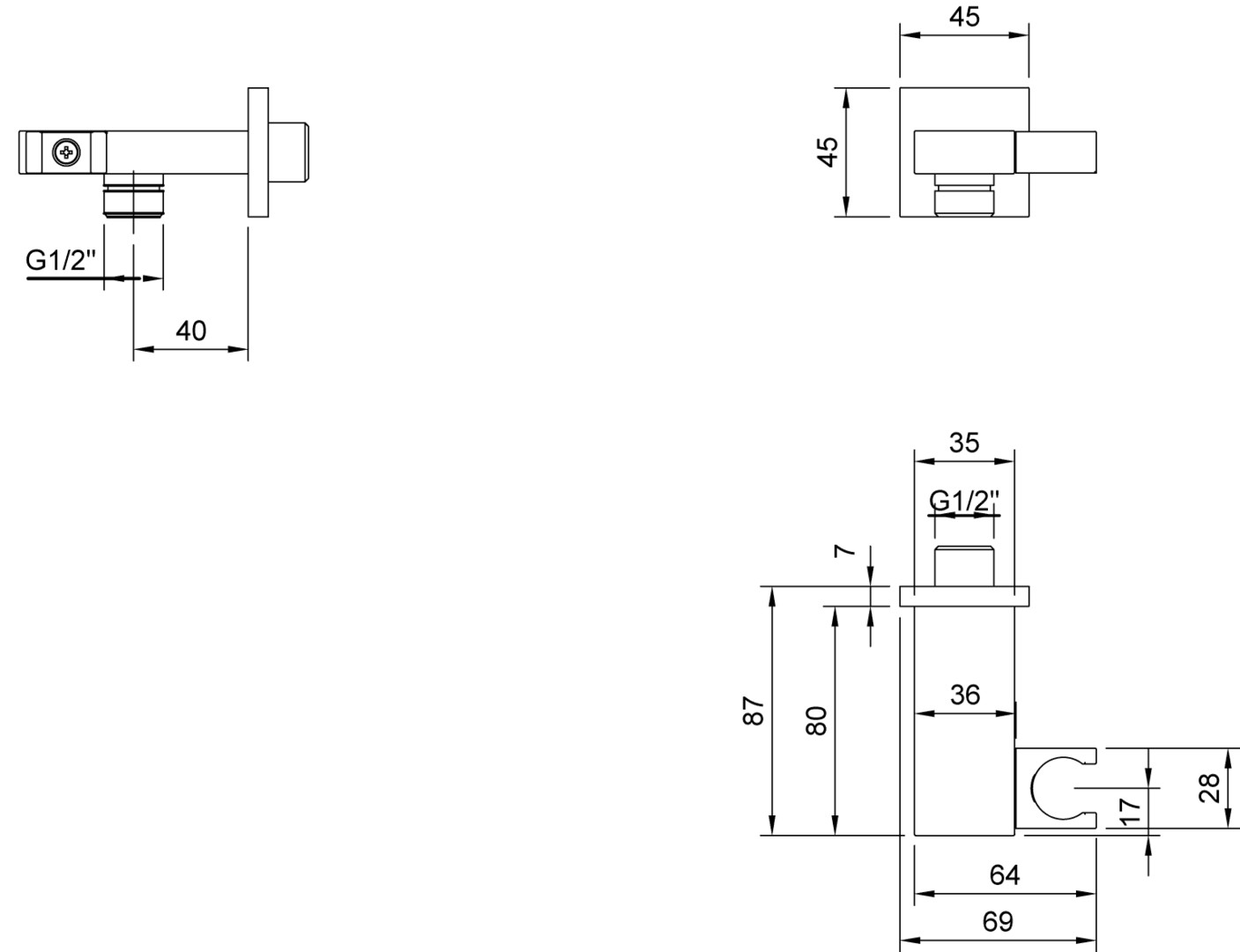 68 x 45 x 87 mm, Material aus Messing, Anschlusstyp 1/2'' Handbrauseschlauch-Anschluss 1/2''