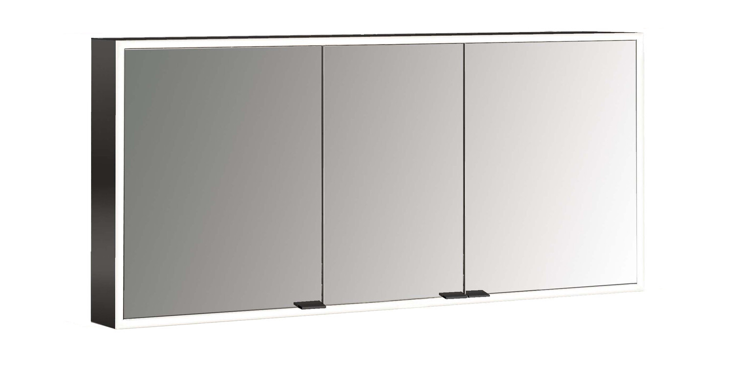 EMCO Aufputz-Lichtspiegelschrank prime 1400x700mm, 3-türig, schwarz/spiegel