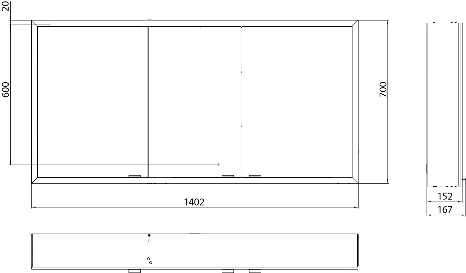 EMCO Aufputz-Lichtspiegelschrank prime 1400x700mm, 3-türig, aluminium/spiegel EC949706287