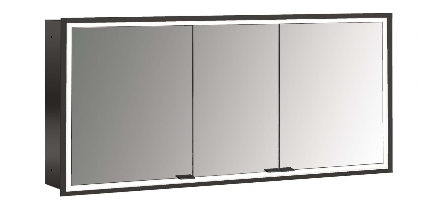 EMCO Unterputz-Lichtspiegelschrank prime 1400x730mm, 3-türig, schwarz/spiegel