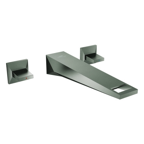 GROHE Fertigmontageset Allure Brilliant UP-3-Loch-Waschtischarmatur, 1/2", Ausladung 21cm, Wandmontage, hard graphite gebürstet