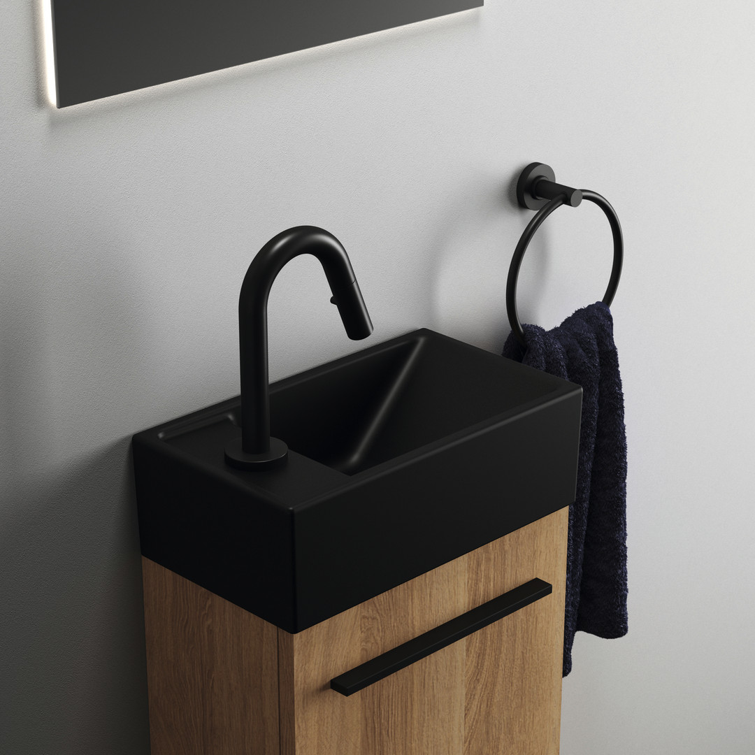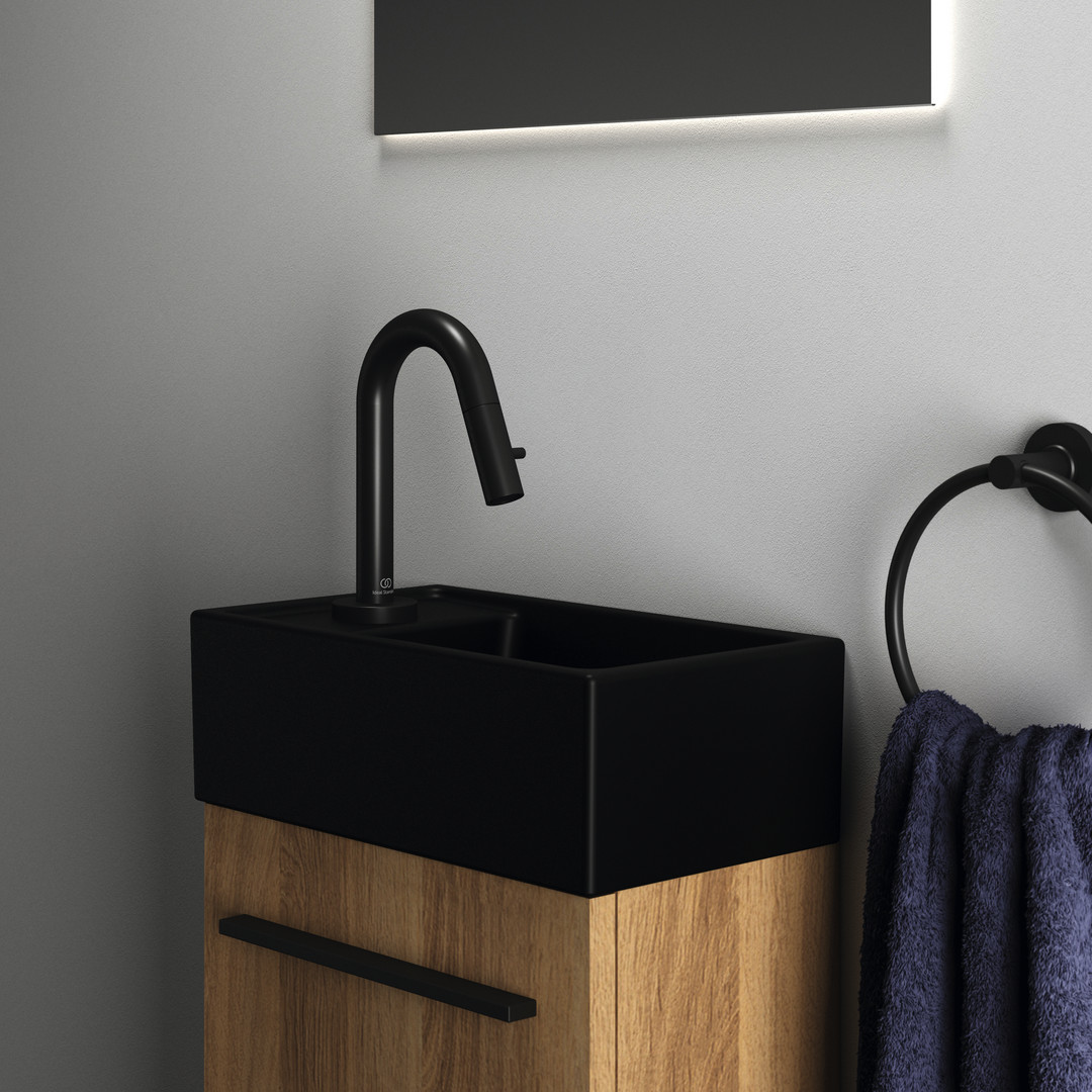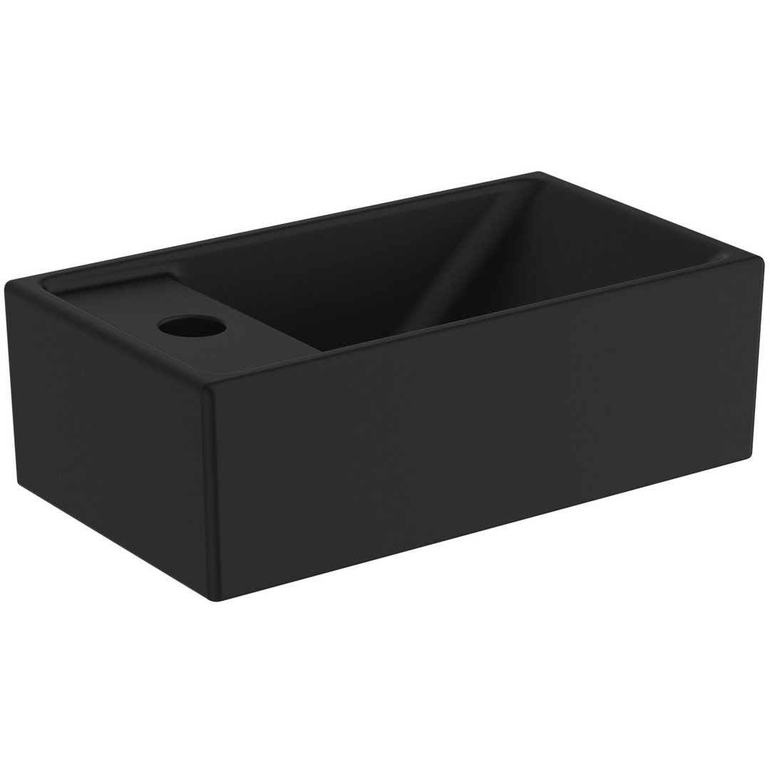 Ideal-Standard Hand-Waschbecken i.life S 37x21x12cm, mit Hahnloch links, ohne Überlauf, schwarz matt