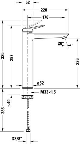 Duravit Waschtisch-Einhebelmischer XL Wave Ausladung 176mm, ohne Zugstangen-Ablaufgarnitur, chrom