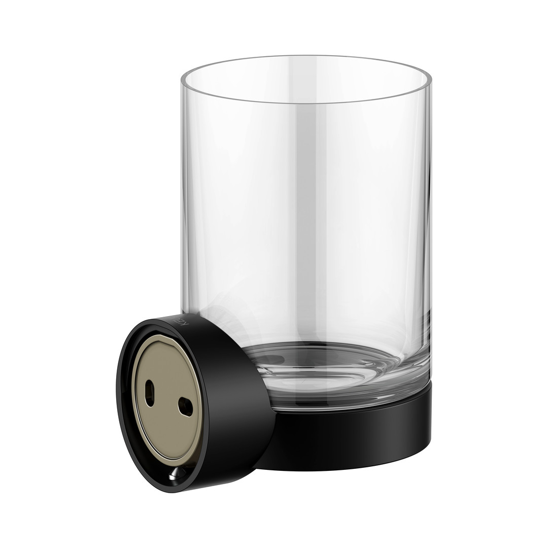 KEUCO Glashalter REVA mit Echtkristall-Glas und Halter, schwarz matt