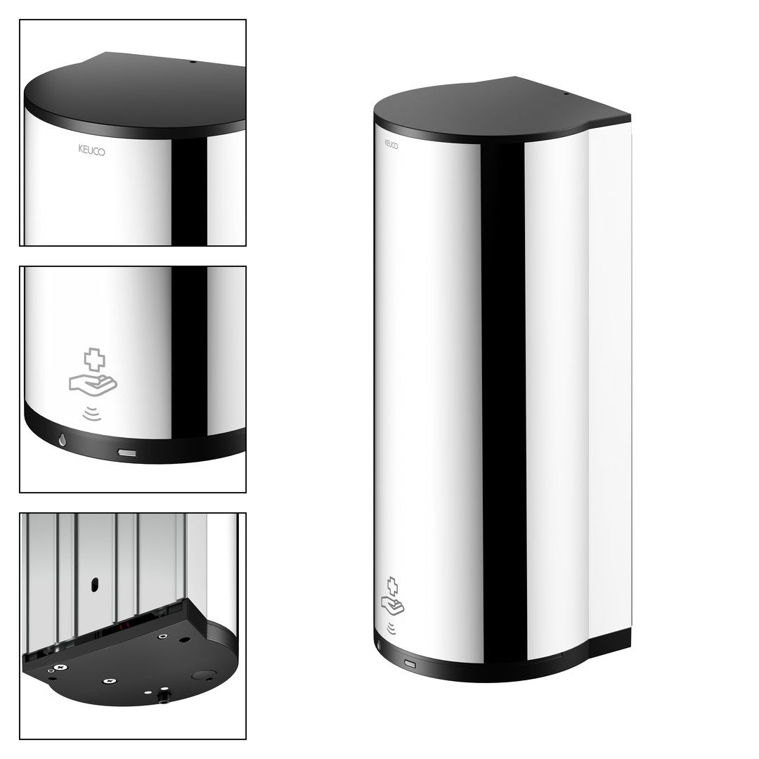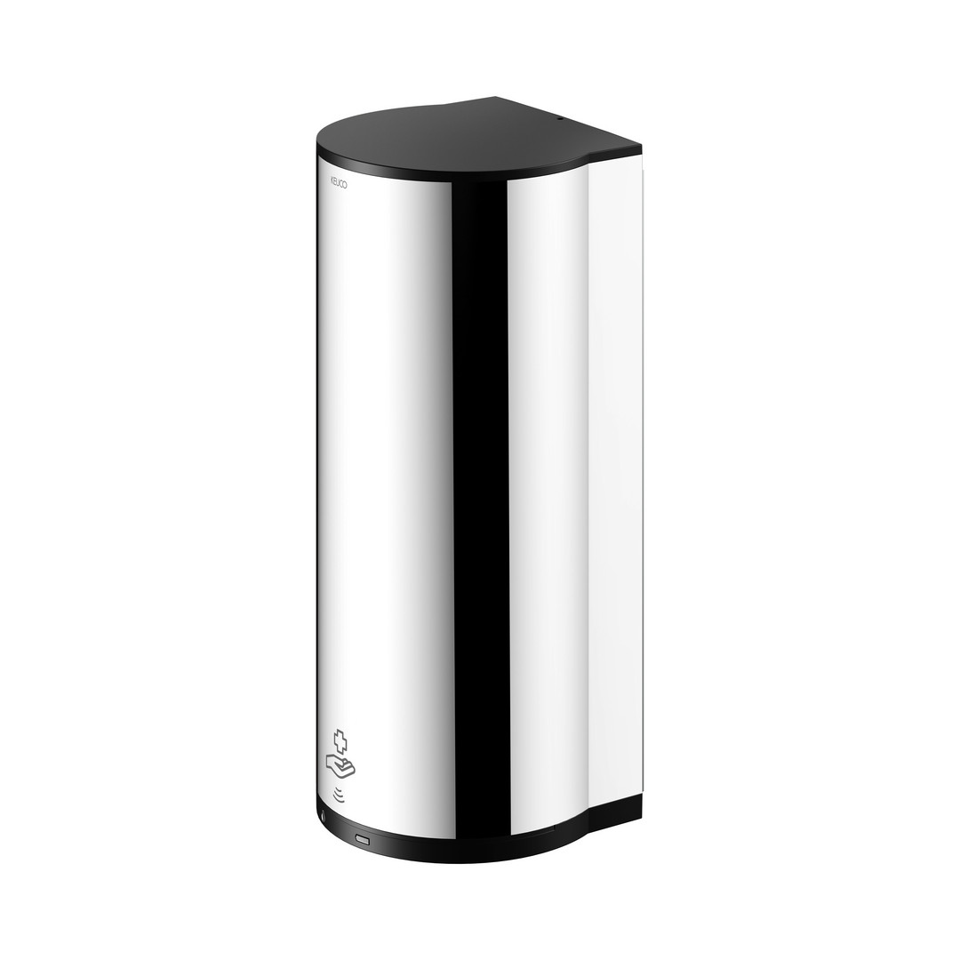 KEUCO Sensor-Desinfektionsmittelspender Plan für Flüssigdesinfektion und Desinfektionsgel, verchromt / schwarz