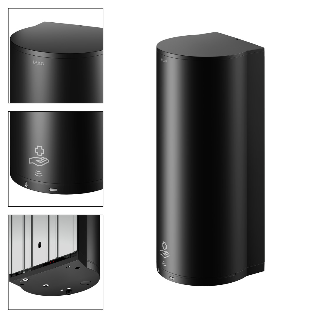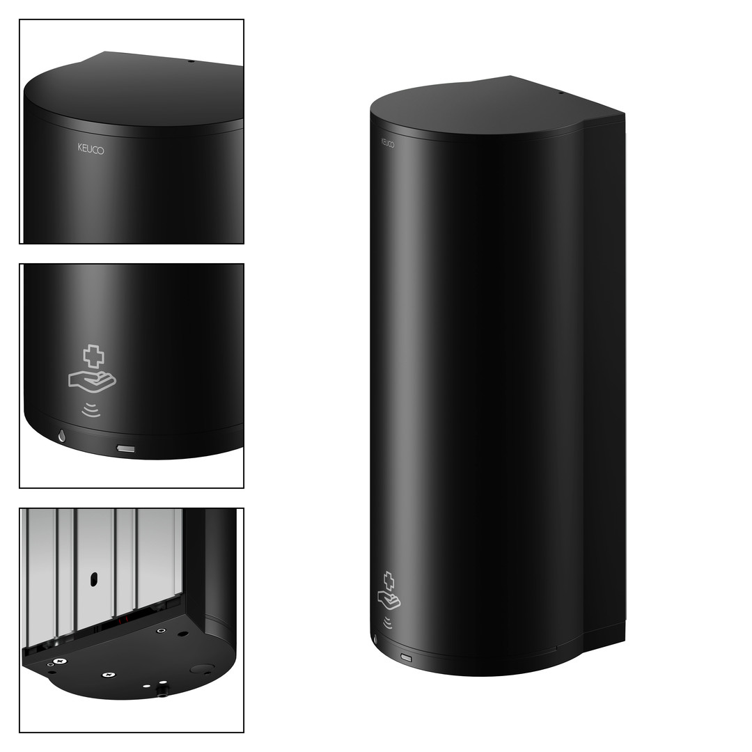 KEUCO Sensor-Desinfektionsmittelspender Plan für Flüssigdesinfektion und Desinfektionsgel, schwarz matt / schwarz