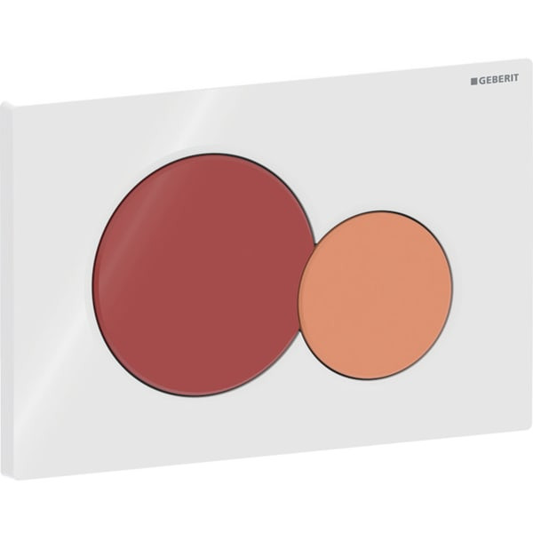 Geberit Betätigungsplatte Sigma01 Round Platte weiß, Taste karminrot/orange, für 2-Mengen-Spülung, Kunststoff