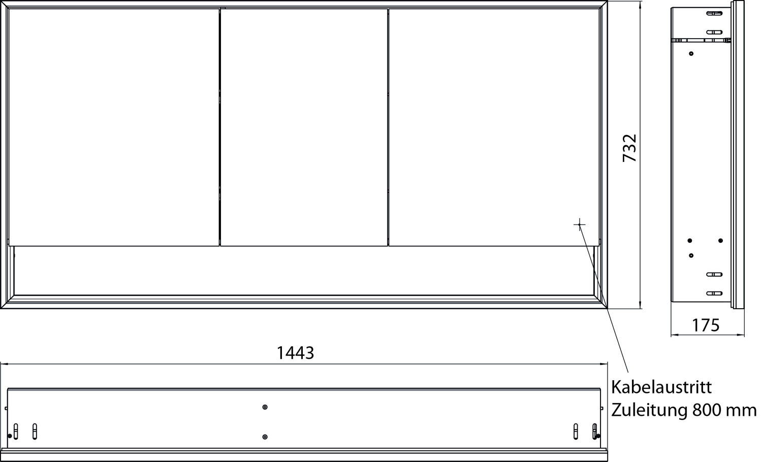 EMCO Unterputz-Lichtspiegelschrank Loft 1400x733mm, mit Unterfach, LED, 3-türig, aluminium/weiss