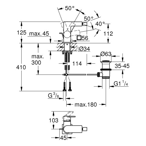 GROHE Bidet-Einhebelmischer Allure 1/2", mit Zugstangen-Ablaufgarnitur, chrom FG24160001