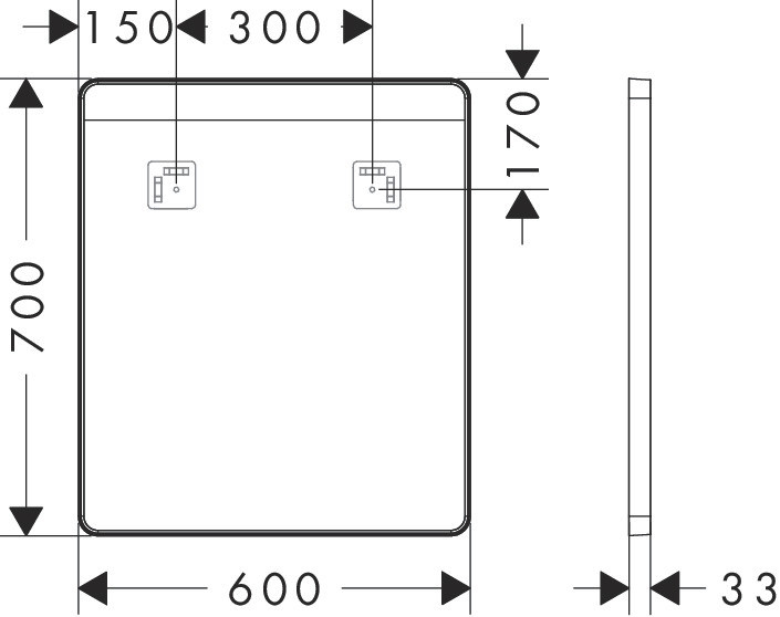 hansgrohe Spiegel Xarita Lite Q mit horizontaler LED-Beleuchtung, mattschwarz, B 600 x H 700 x T 30 mm, 6 W