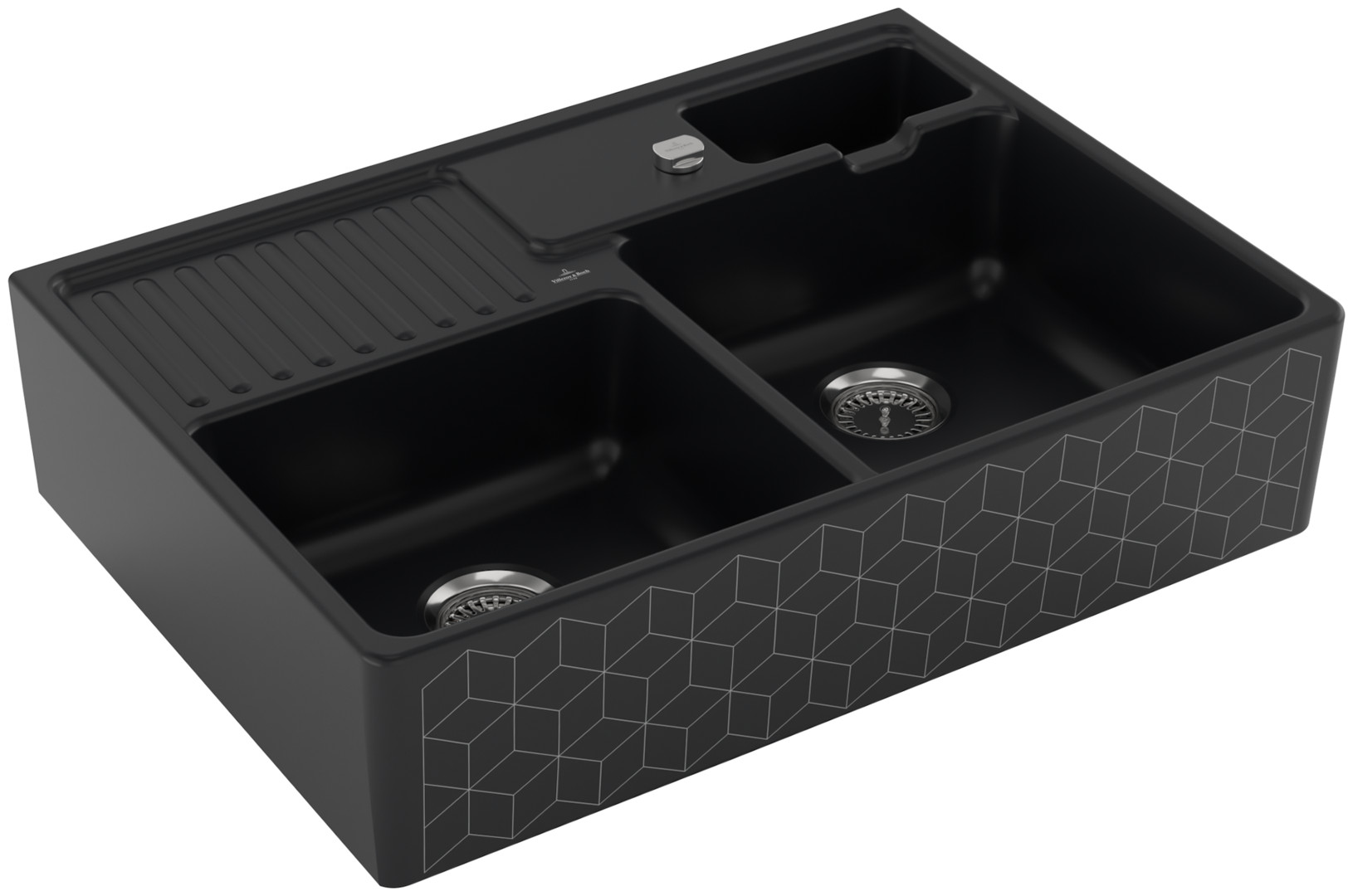 V&B Spülstein-Doppelbecken Resteschale, mit Ablaufgarnitur, Excenterbetätigung, mosaique black