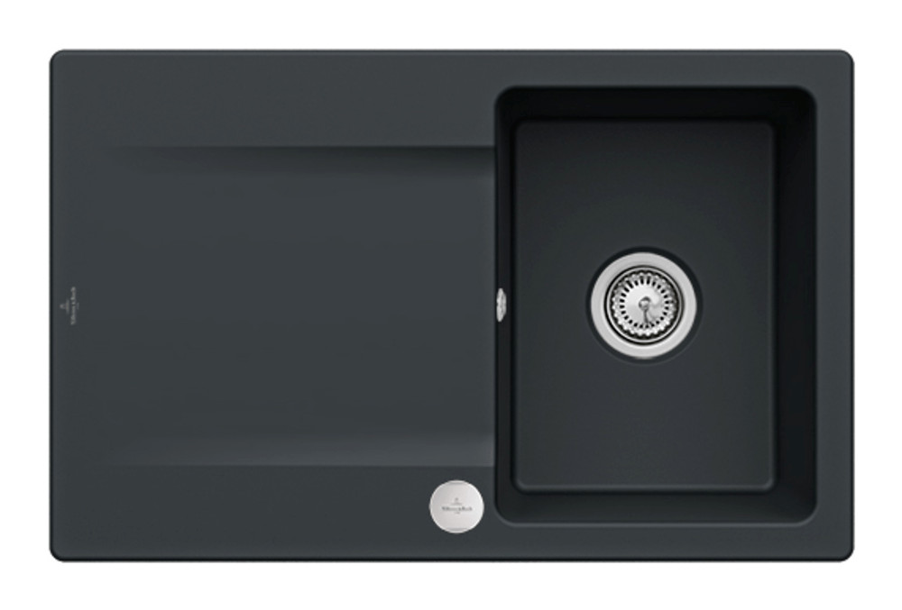 V&B Flächenbündige Spüle Siluet 45 Flat mit Ablaufgarnitur, Excenterbetätigung, pure black