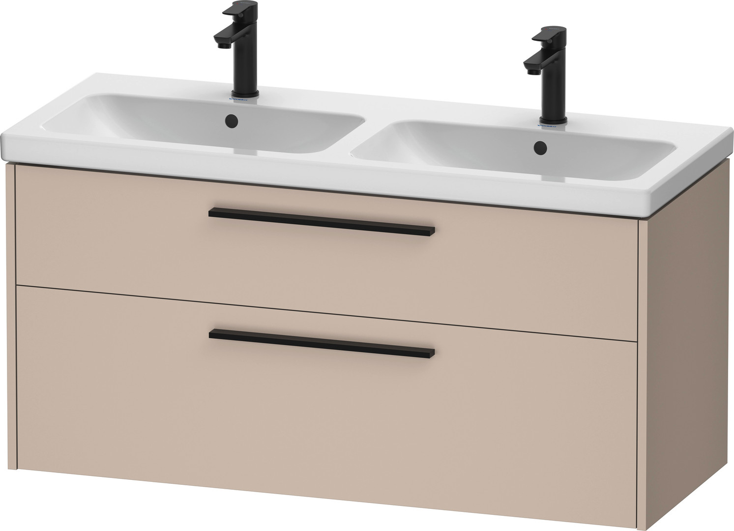 Duravit Waschtisch-Unterschrank D-Code 118,4 x 55,5 x 46 cm, 2 Schubkästen, Schürze, Taupe Matt, Griff diamantschwarz
