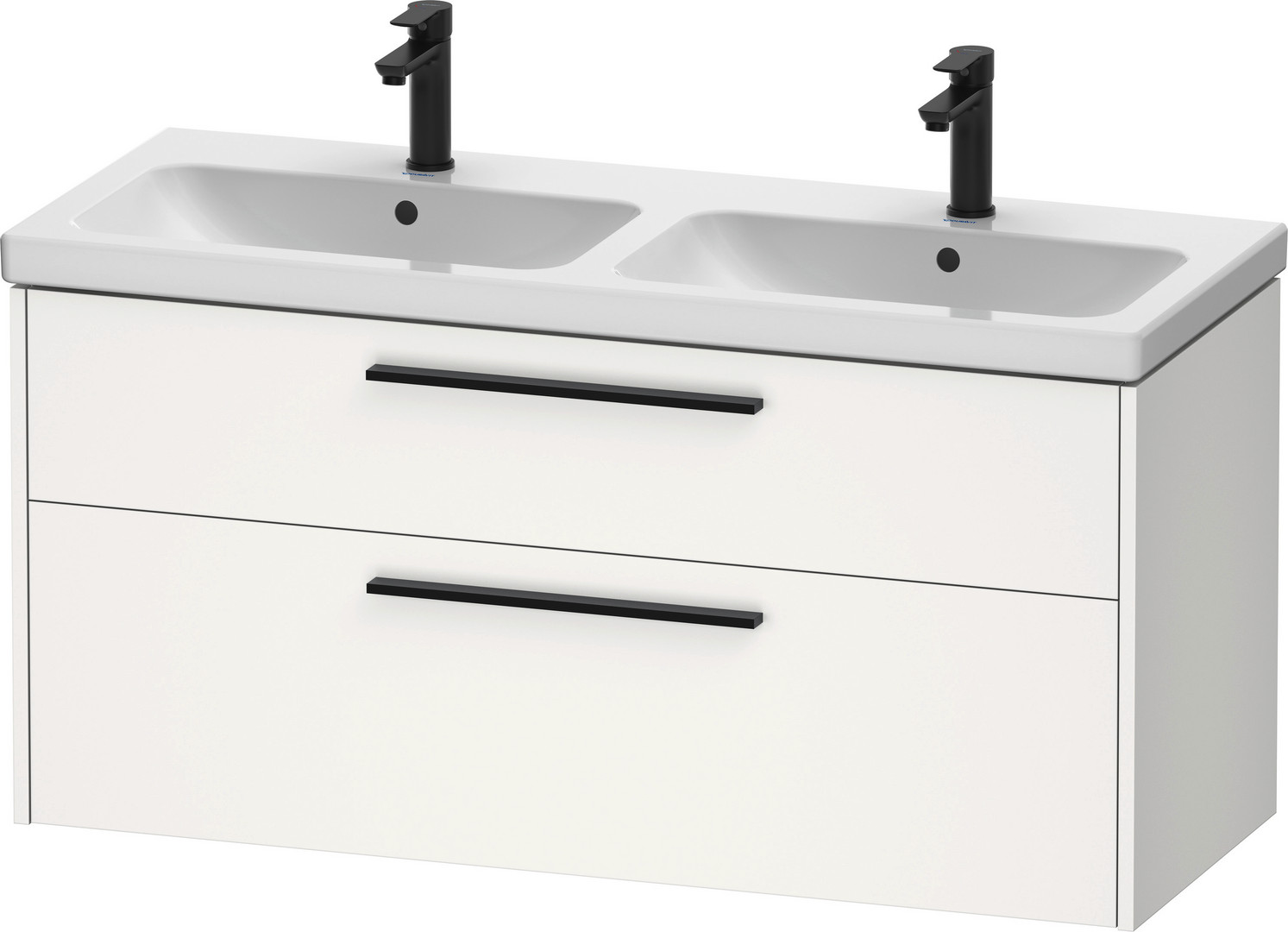 Duravit Waschtisch-Unterschrank D-Code 118,4 x 55,5 x 46 cm, 2 Schubkästen, Schürze, Weiß Matt, Griff diamantschwarz