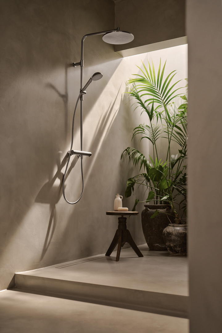 HANSA Regenbrause-Thermostat HANSAAURELIA Wandmontage, 3-strahlig, rund, Stahl gebürstet