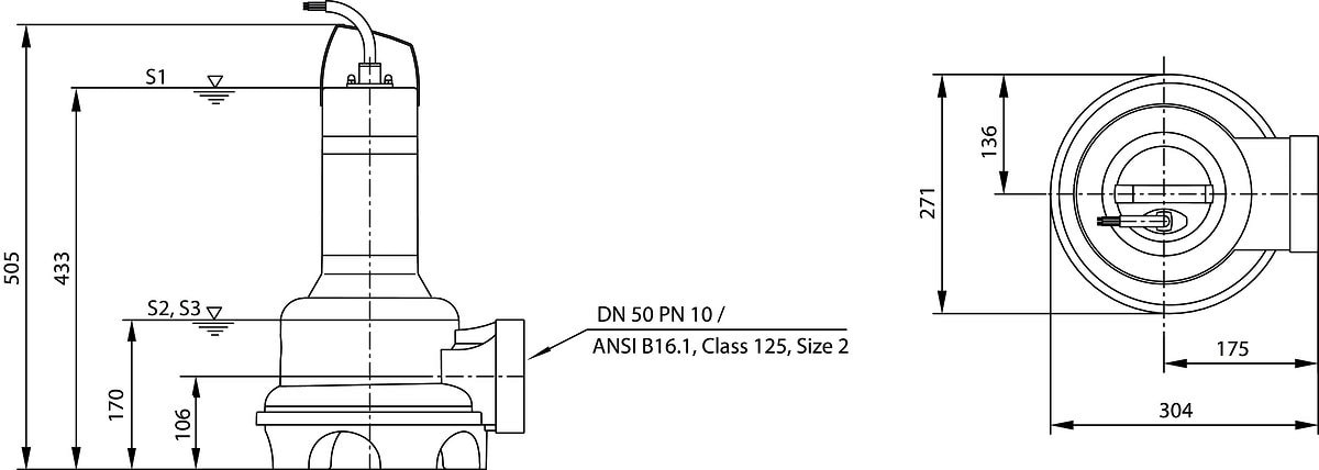 für kleinere gewerblich genutzte Gebäude zur Abwasserentsorgung (nach EN 12050-1) geeignet, für die stationäre und transportable Nassaufstellung im intermittierenden Betrieb, zur Förderung in gewerblichen Bereichen von Abwasser mit Fäkalien, Schmutzwasser (mit geringen Mengen Sand und Kies), Schmutzwasser, schwach sauer mit einem pH-Wert >4,5, korrosionsfreie Hydraulik für universelle Anwendungen und verschiedene Fördermedien, integriertem Kondensator beim Einphasenmotor und Flansch mit integrierter Befestigung, Freistromhydraulik und glatten Oberflächen, direkter Zugang zur Dichtungskammer und zum Pumpengehäuse, doppelte Abdichtung und eine Dichtungskammer mit großem Volumen, 10 m Kabel