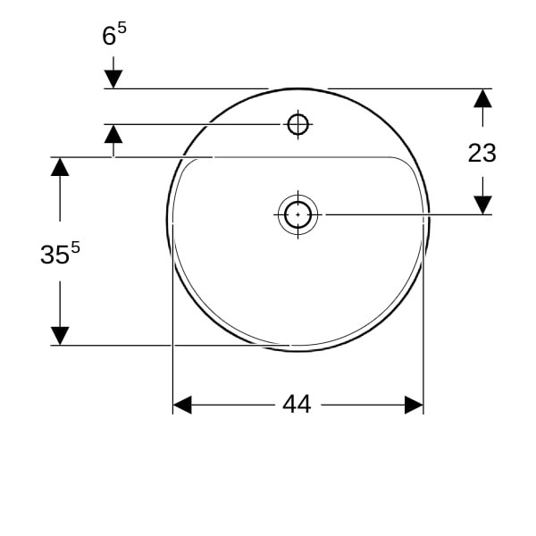 Geberit Einbau-Waschtisch VariForm d= 48cm, mit Hahnlochbank, ohne Überlauf, rund, Unterseite glasiert / weiß GE500707012