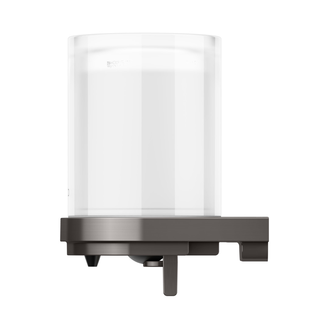 Füllmenge 180 ml, Dosiermenge 0,5 ml/Hub, Betätigung von unten, Befüllung von oben, Echtkristall-Stülpglas mattiert, verdeckte Befestigung, zum Schrauben, mit Befestigungs-Set