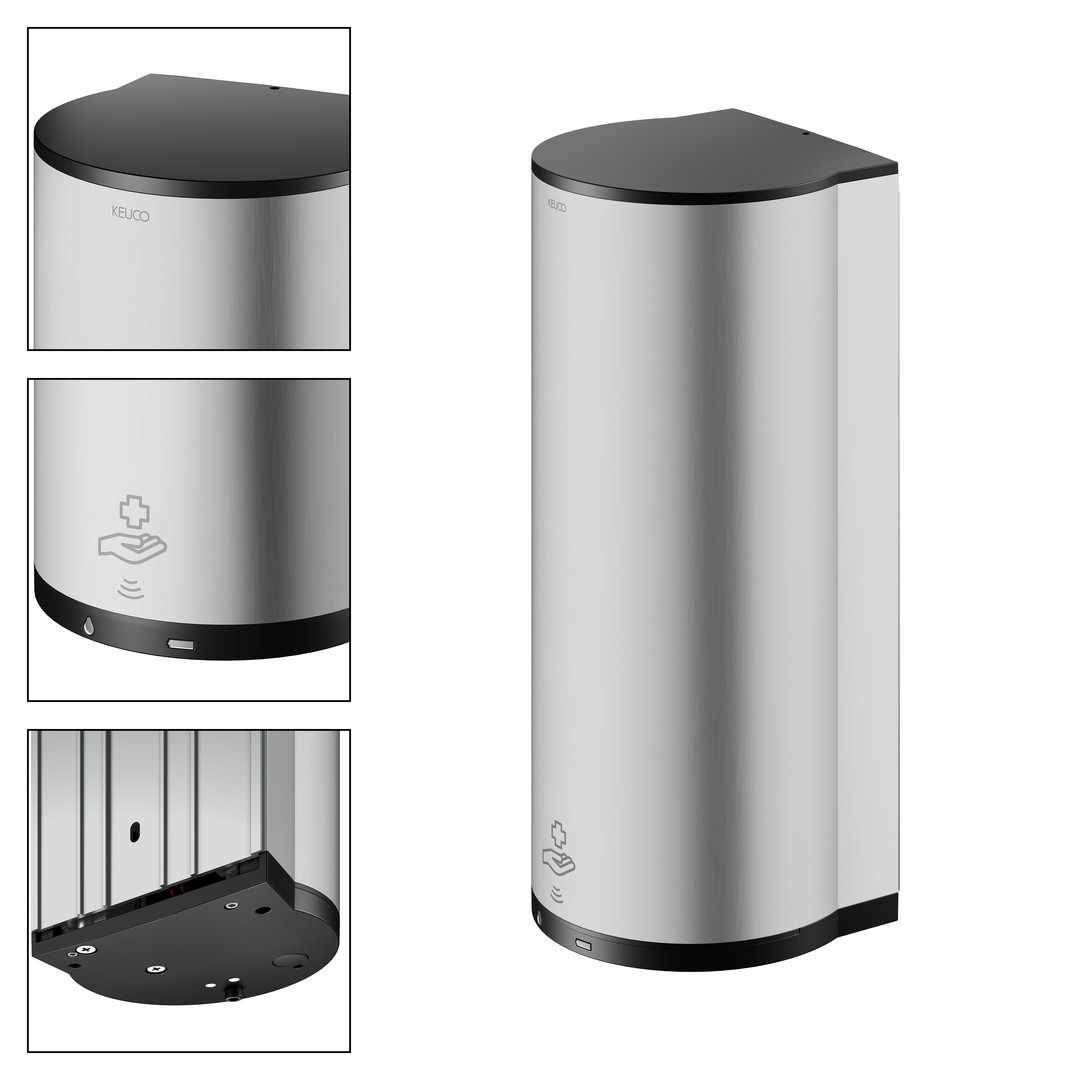 KEUCO Sensor-Desinfektionsmittelspender Plan für Flüssigdesinfektion und Desinfektionsgel, Edelstahl-finish / schwarz