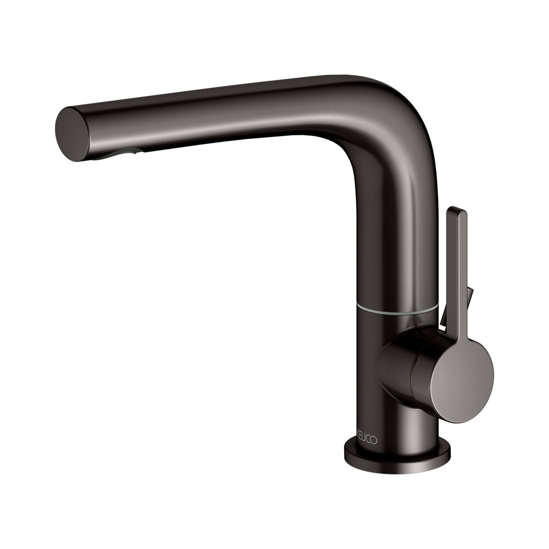 KEUCO Waschtisch-Einhebelmischer 150 Edition 400 Ausladung 153mm, schwenkbar, mit Ablaufgarnitur, titanschwarz gebürstet