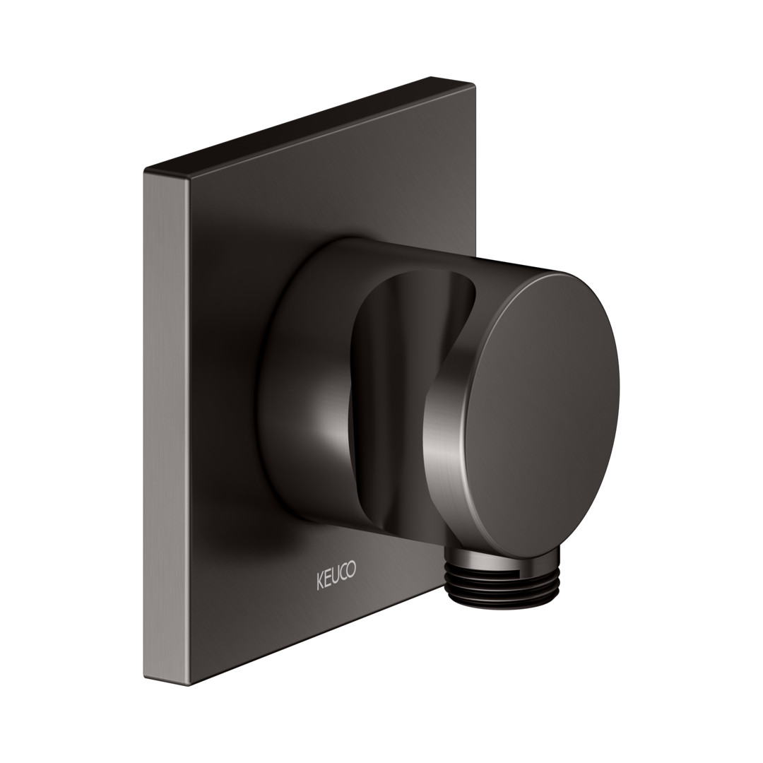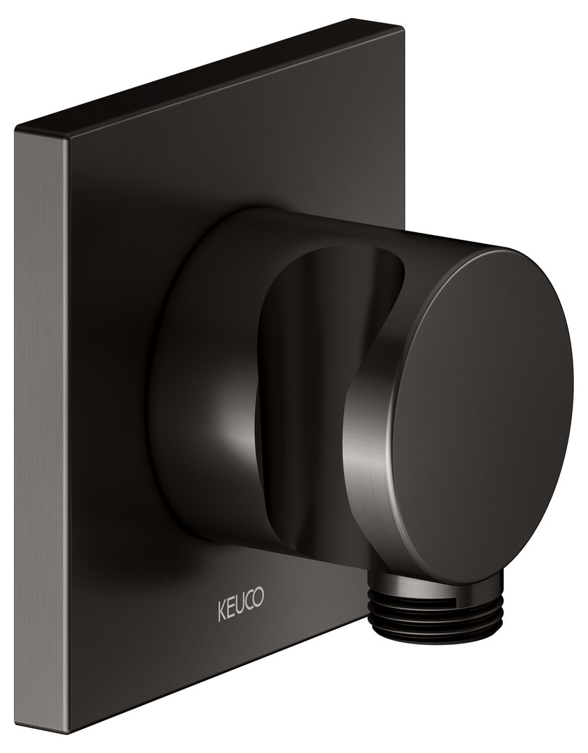 KEUCO Schlauchanschluss titanschwarz gebürstet, Rosette eckig, mit Brausehalter
