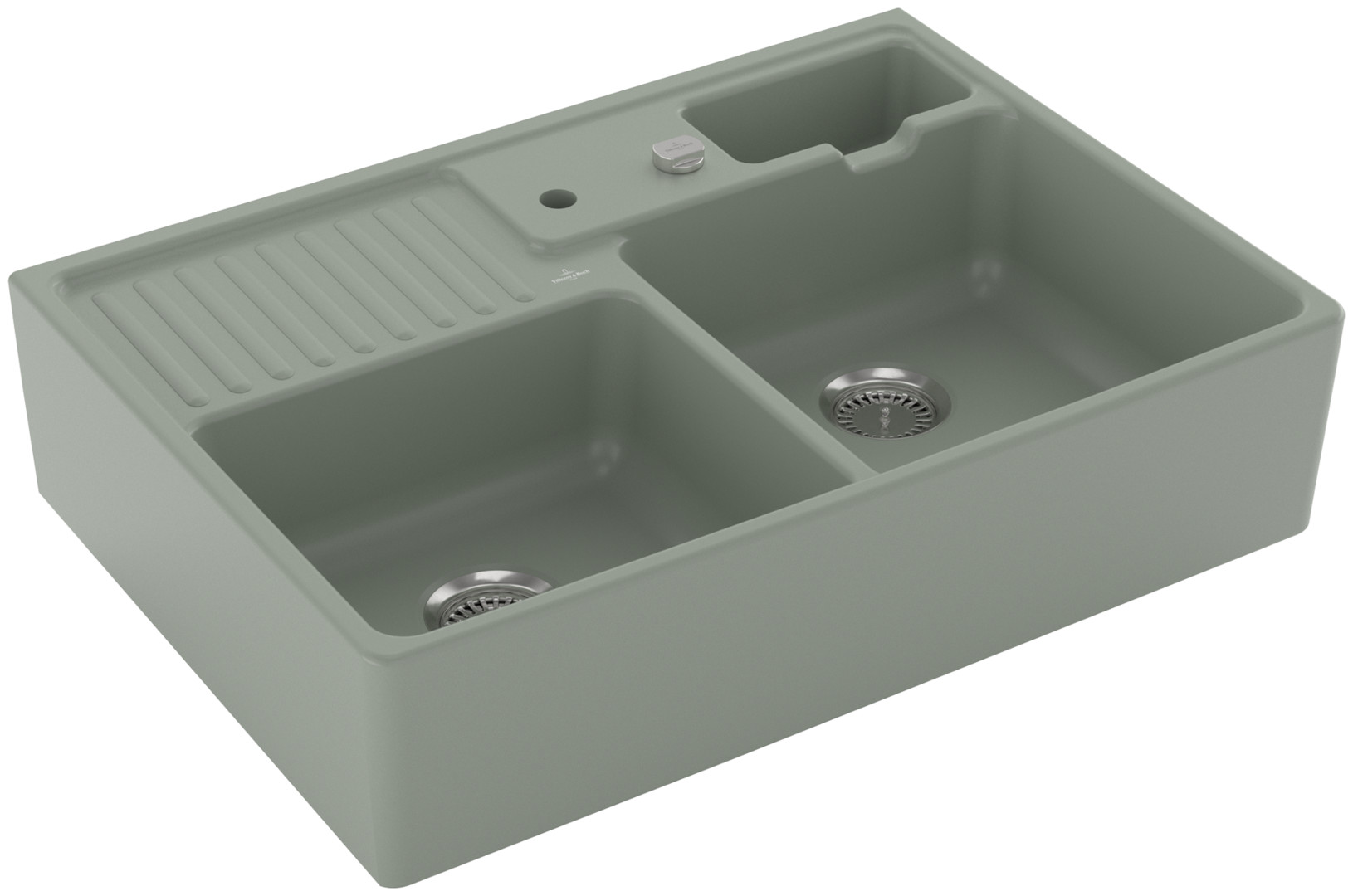 V&B Spülstein-Doppelbecken Resteschale, Einbauspüle, morning green CeramicPlus VB632300R8