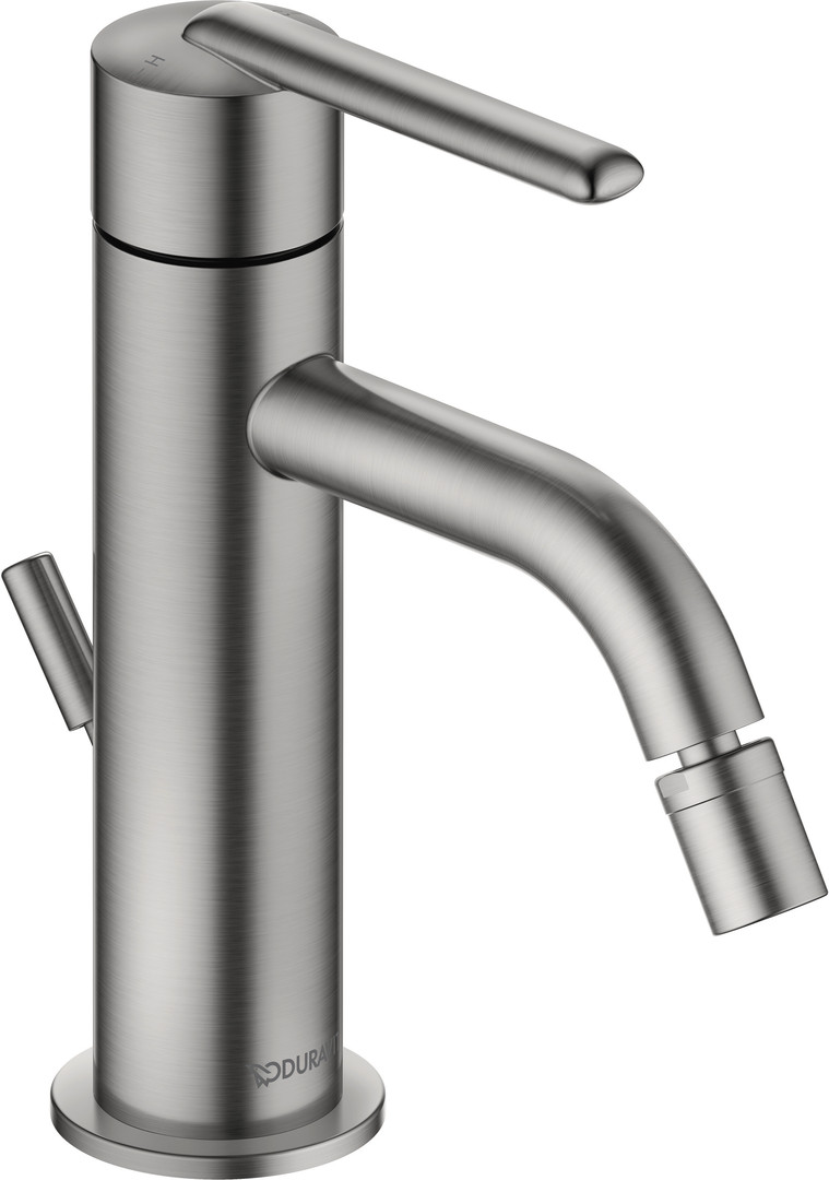 Duravit Bidet-Einhebelmischer Balcoon Ausladung 119mm, mit Zugstange Ablaufgarnitur, Edelstahl gebürstet DUBA2400001070
