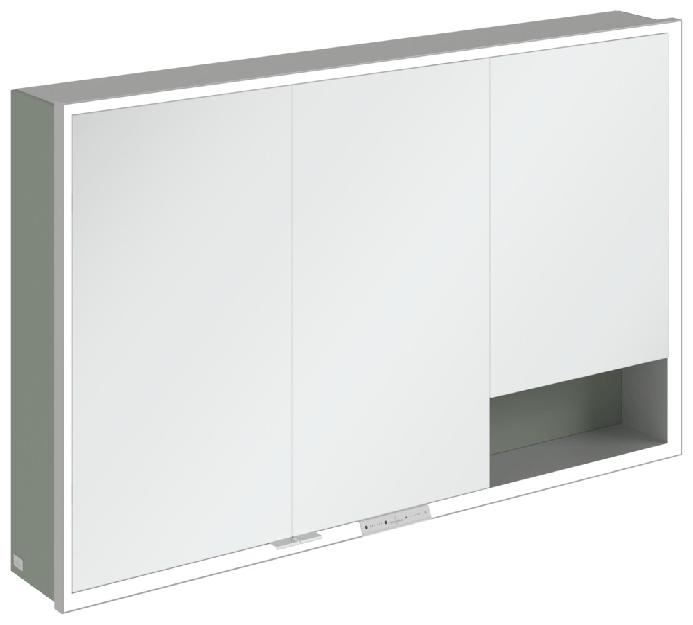 V&B Spiegelschrank My View + 120 x 75 x 16,8 cm, Soft Green, LED-Beleuchtung, Aluminium silber matt eloxiert