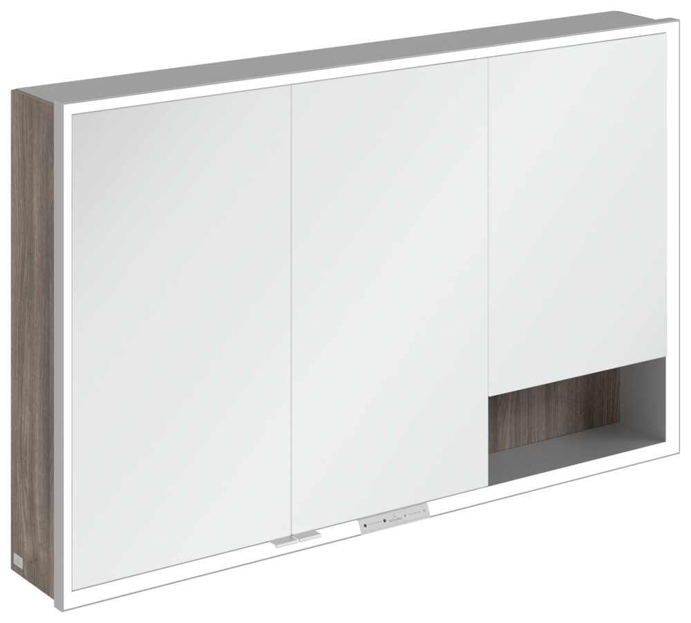 V&B Spiegelschrank My View + 120 x 75 x 16,8 cm, Stone Oak, LED-Beleuchtung, Aluminium silber matt eloxiert
