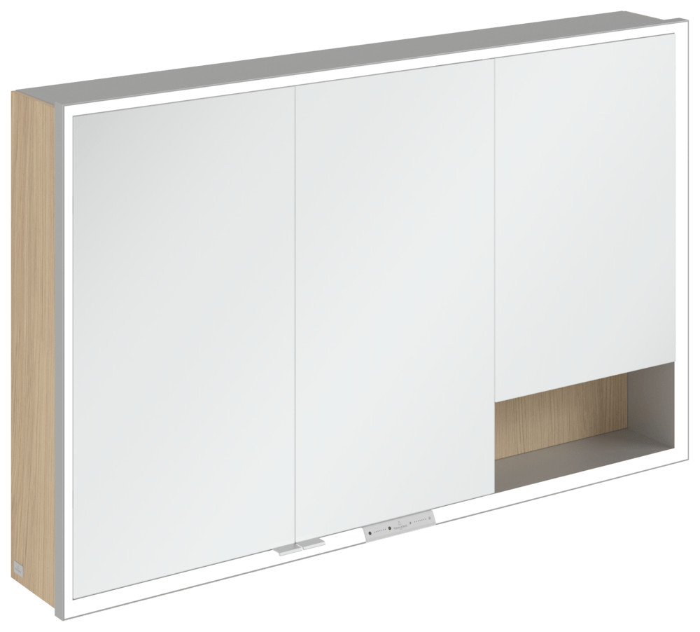 V&B Spiegelschrank My View + 120 x 75 x 16,8 cm, Nordic Oak, LED-Beleuchtung, Aluminium silber matt eloxiert