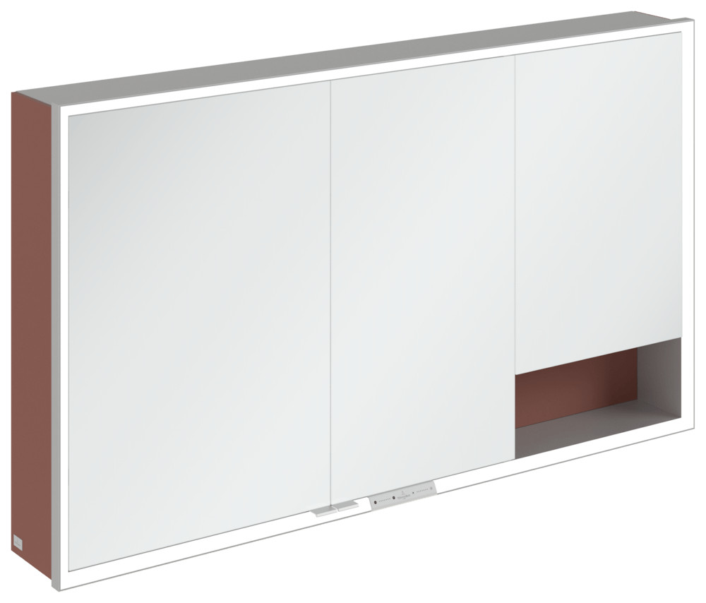 V&B Spiegelschrank My View + 130 x 75 x 16,8 cm, Wine Red, LED-Beleuchtung, Aluminium silber matt eloxiert