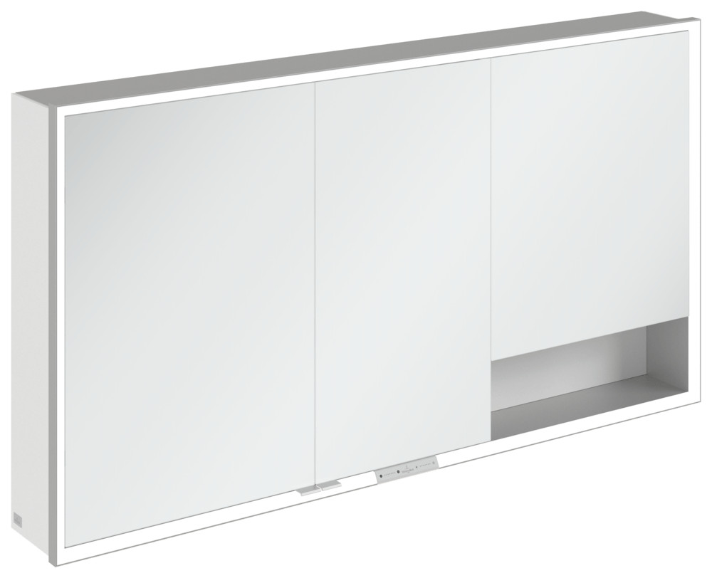 V&B Spiegelschrank My View + 140 x 75 x 16,8 cm, Pure White, LED-Beleuchtung, Aluminium silber matt eloxiert