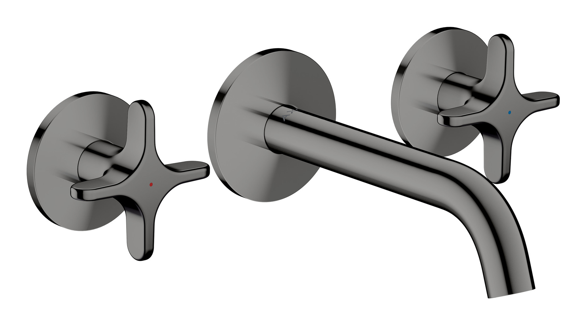 hansgrohe 3-Loch-Waschtisch-Armatur Axor One UP, Ausladung 160mm, Wandmontage mit Rosetten, mit Kreuzgriff, polished black chrome
