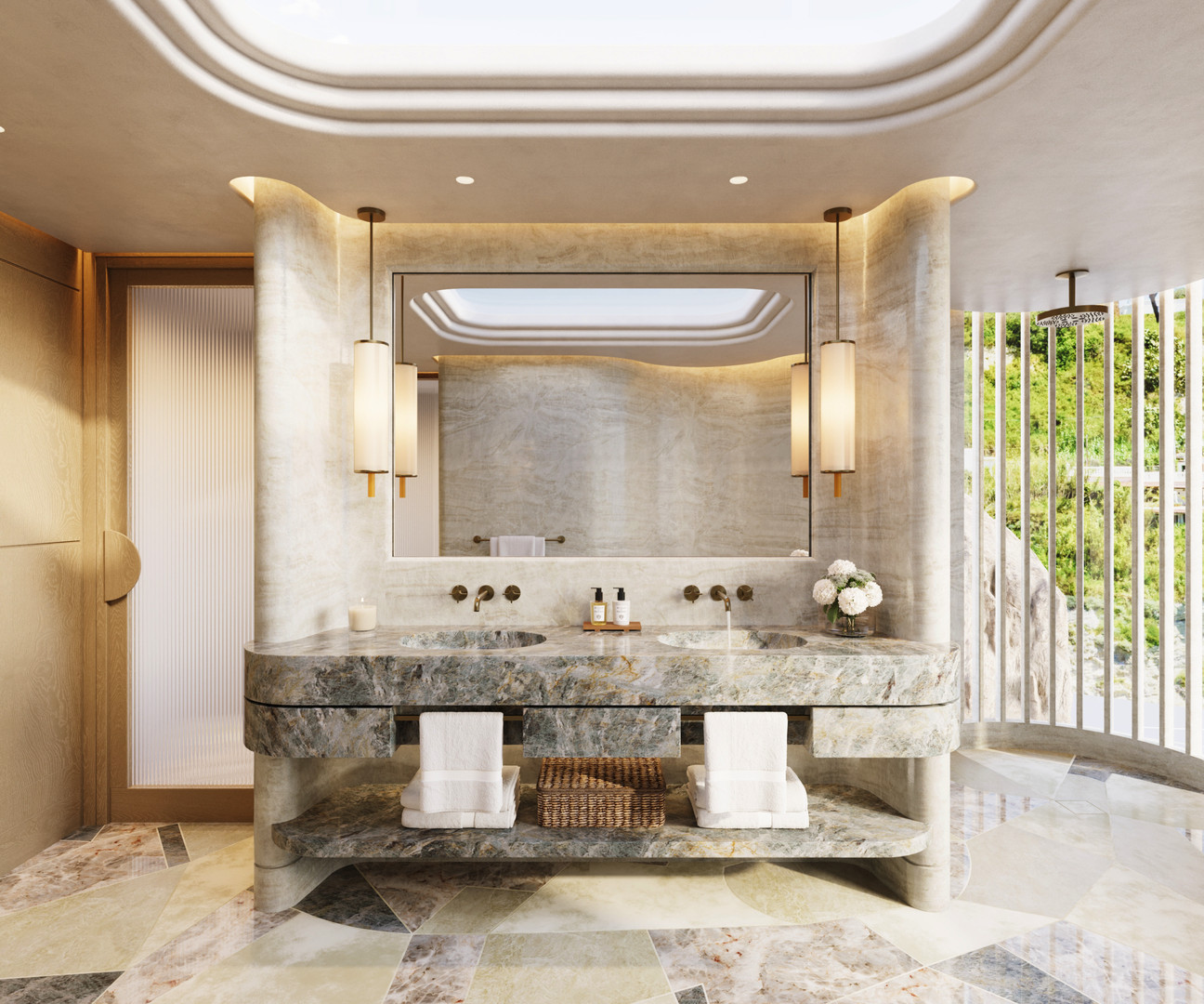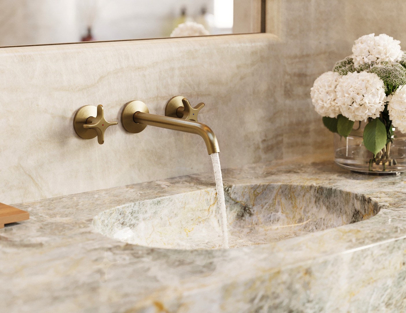 hansgrohe 3-Loch-Waschtisch-Armatur Axor One UP, Ausladung 220mm, Wandmontage mit Rosetten, mit Kreuzgriff, brushed bronze