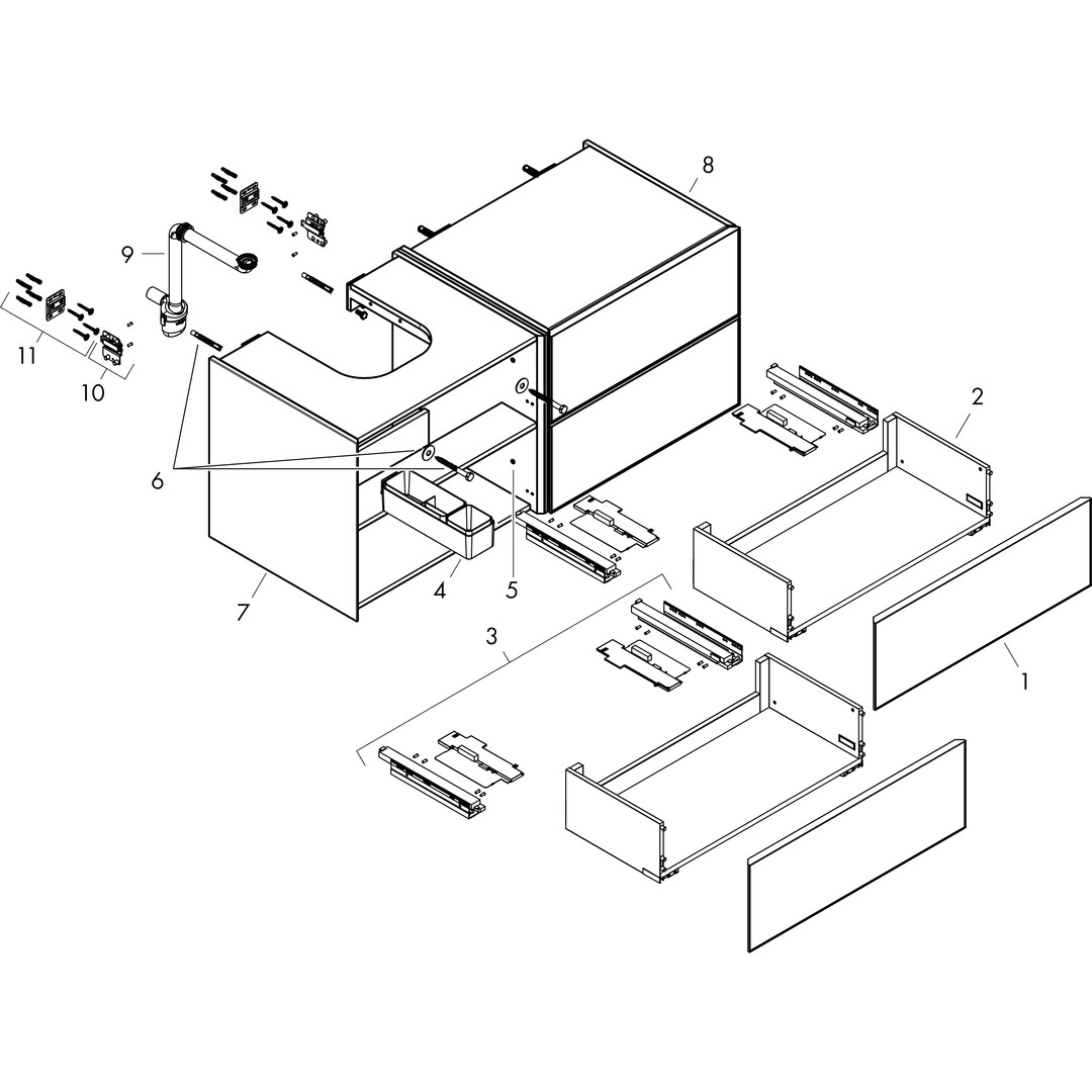 für Konsolen mit Aufsatzwaschtisch, geschliffen, Korpus: MDF, Oberfläche Korpus: Lack, Frontrahmen: Aluminium, Oberfläche Frontrahmen: Pulverlack, SmoothSurface, AntiFingerprint, Moisture Proof, grifflos, PushOpen-Funktion, Vollauszug, ohne Siphonausschnitt, SoftClose, Inneneinteilung, mit Basis Boxen Set, mit Raumsparsiphon Sperrwasserhöhe 50 mm, Wandmontage, vormontiert, mit Befestigungsmaterial, Wechseln der Fronten möglich