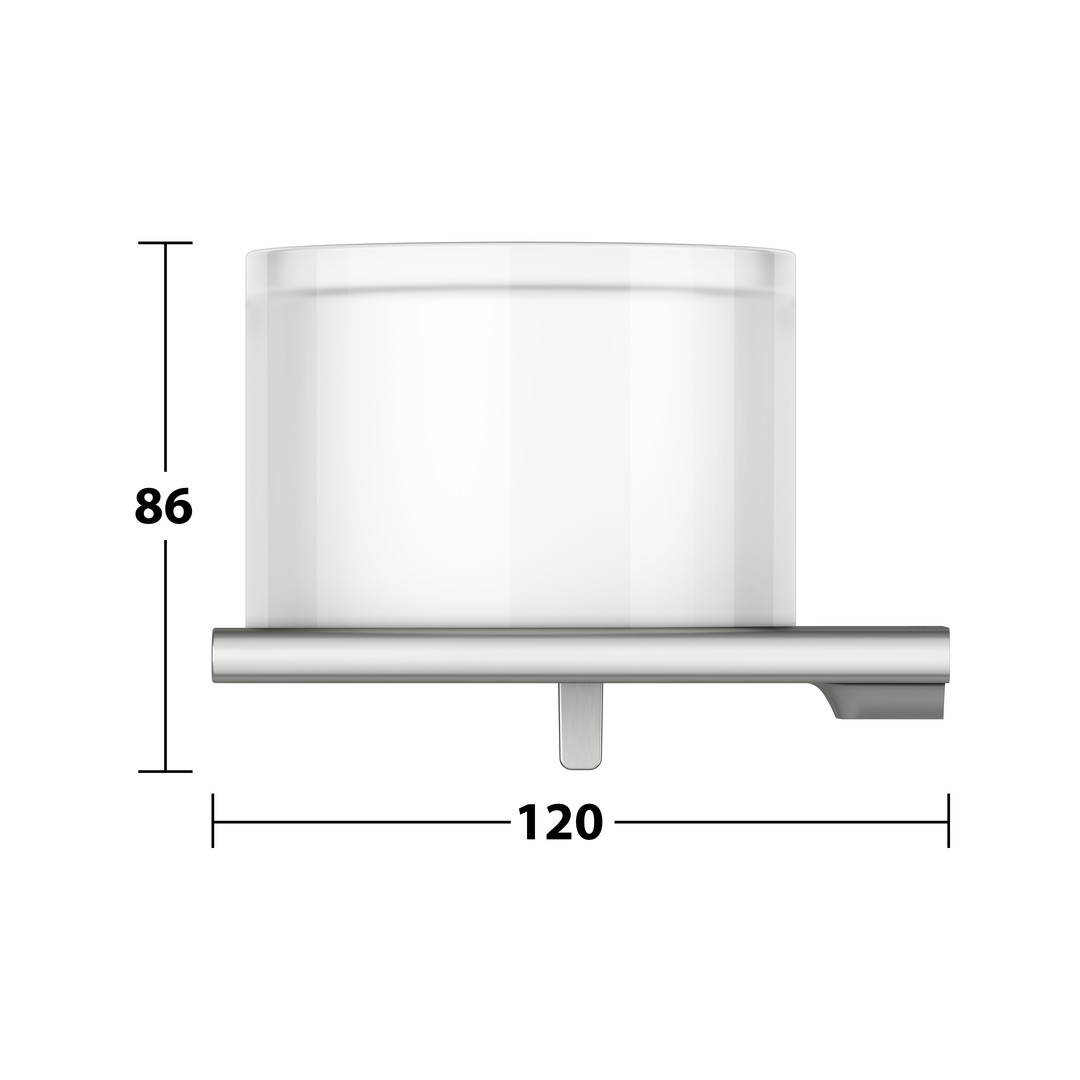 Füllmenge 150 ml, Dosiermenge 0,5 ml/Hub, Betätigung von unten, Befüllung von oben, Echtkristall-Stülpglas mattiert, verdeckte Befestigung, zum Schrauben, mit Befestigungs-Set