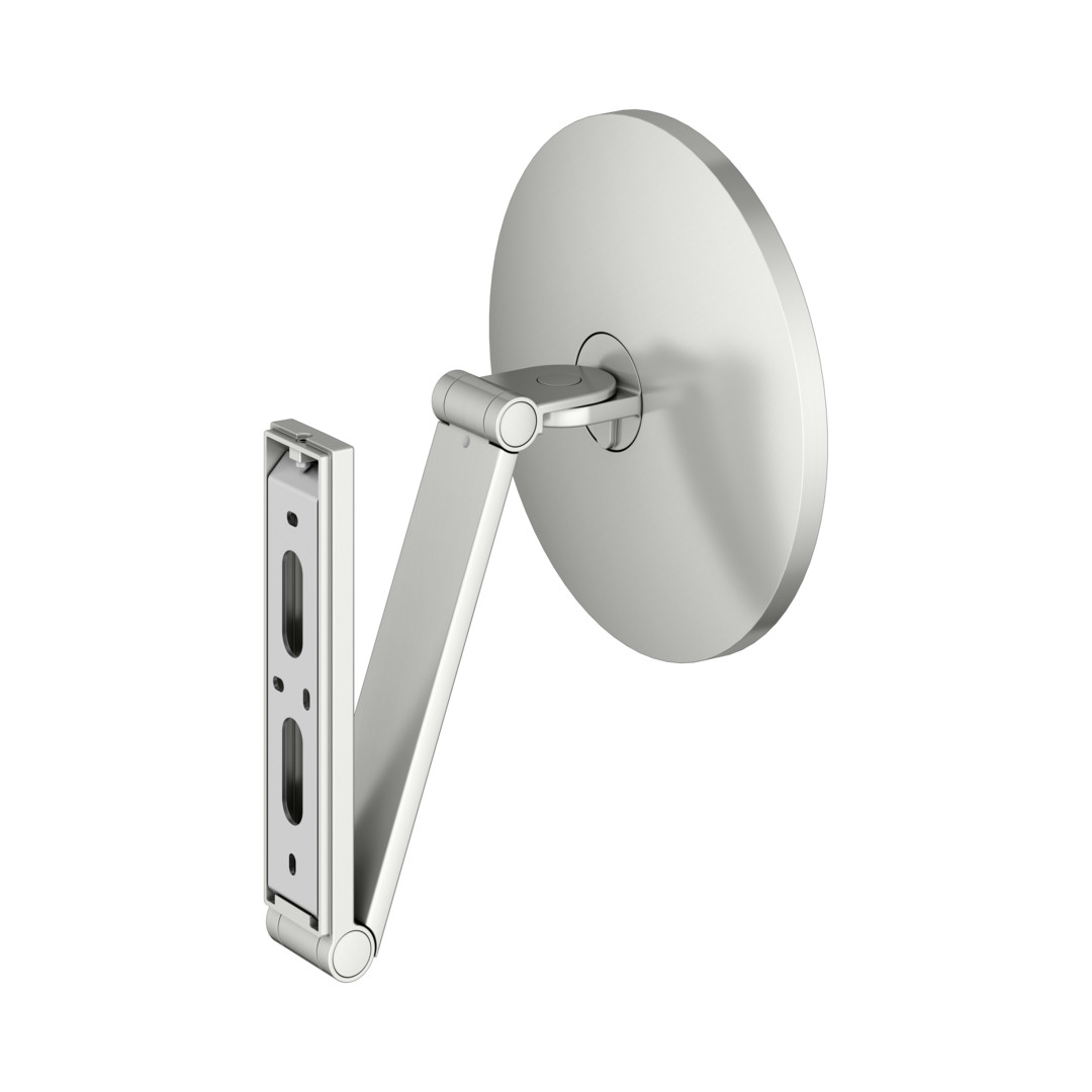 Wandmontage, rund, 3-dimensionaler Gelenkarm, Spiegel zweiseitig, konkav/plan, Vergrößerungsfaktor x5