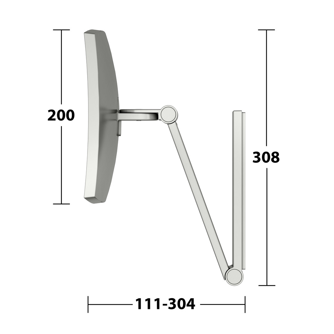 Wandmontage, eckig, 3-dimensionaler Gelenkarm, Spiegel einseitig, konkav, Vergrößerungsfaktor x5