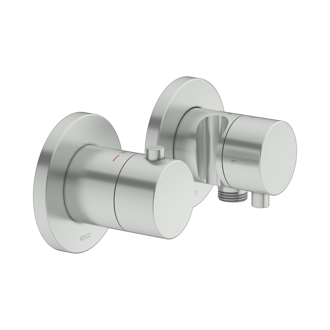 KEUCO Fertigmontageset Plan blue UP-Thermostatarmatur, mit Schlauchanschluss, Brausehalter, für 2 Verbraucher, edelstahl-finish KE53953211221