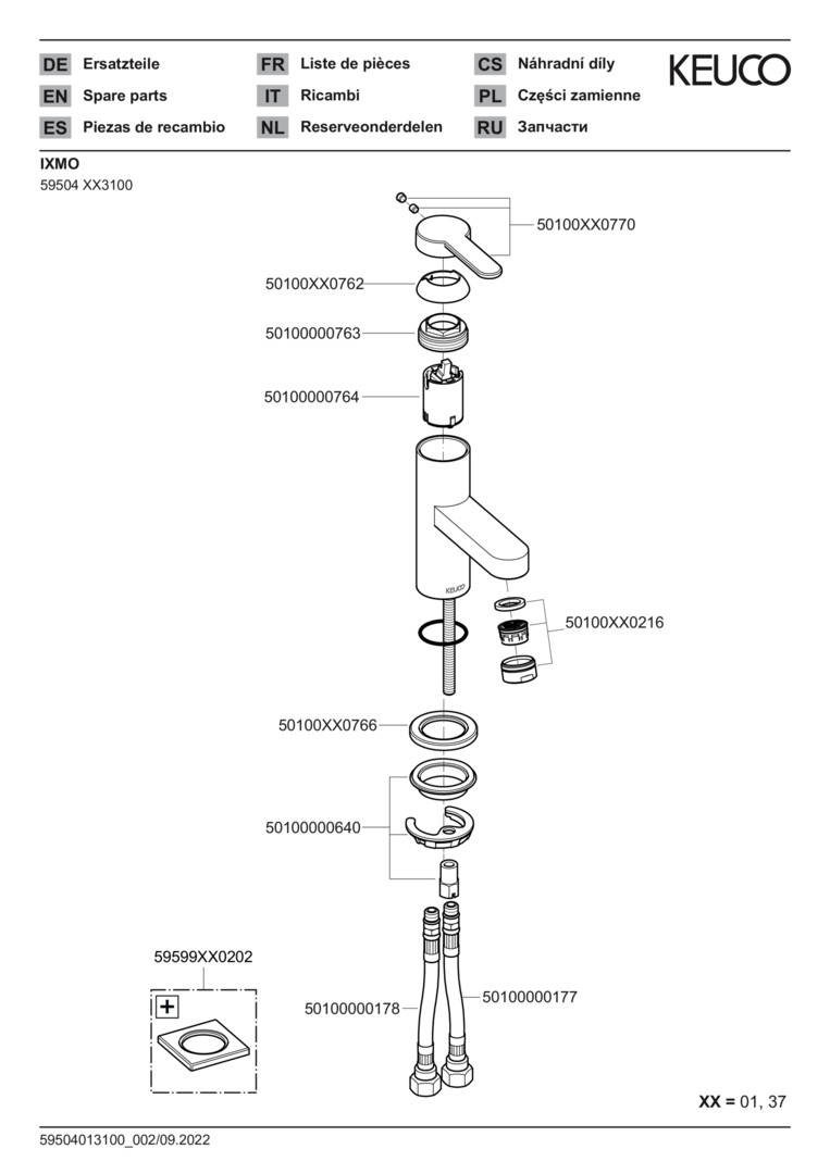 KEUCO Waschtisch-Einhebelmischer 60 IXMO Flat Ausladung 89mm, ohne Ablaufgarnitur, edelstahl-finish