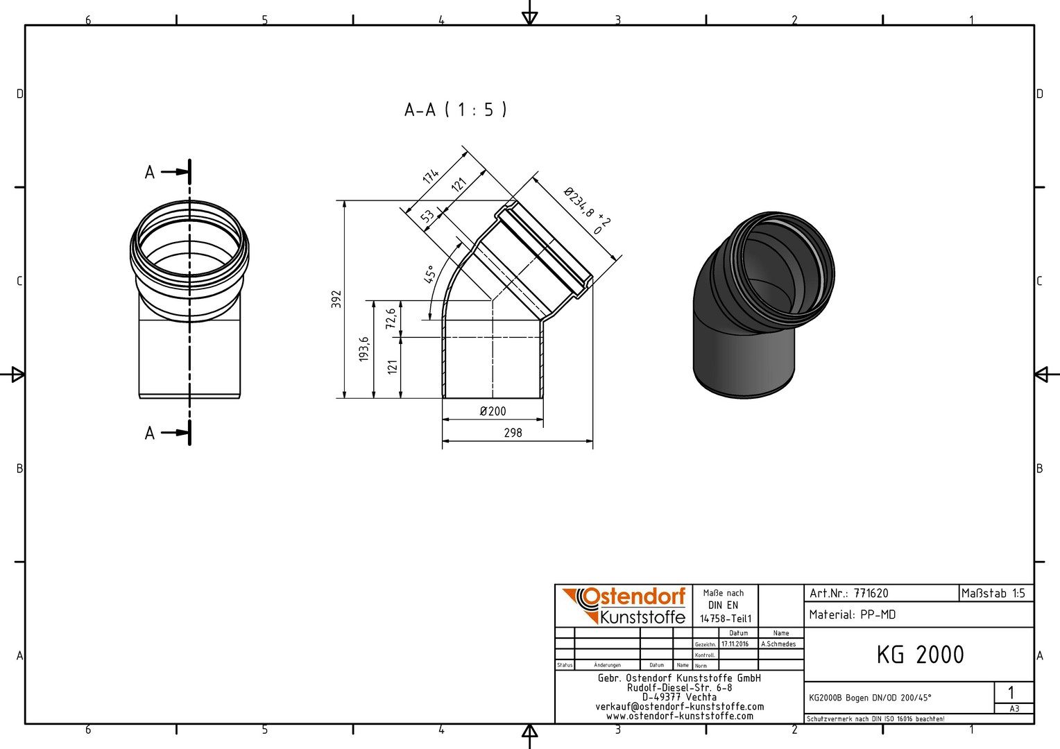 Ostendorf KG2000 Bogen B DN/OD 200, 45Grad