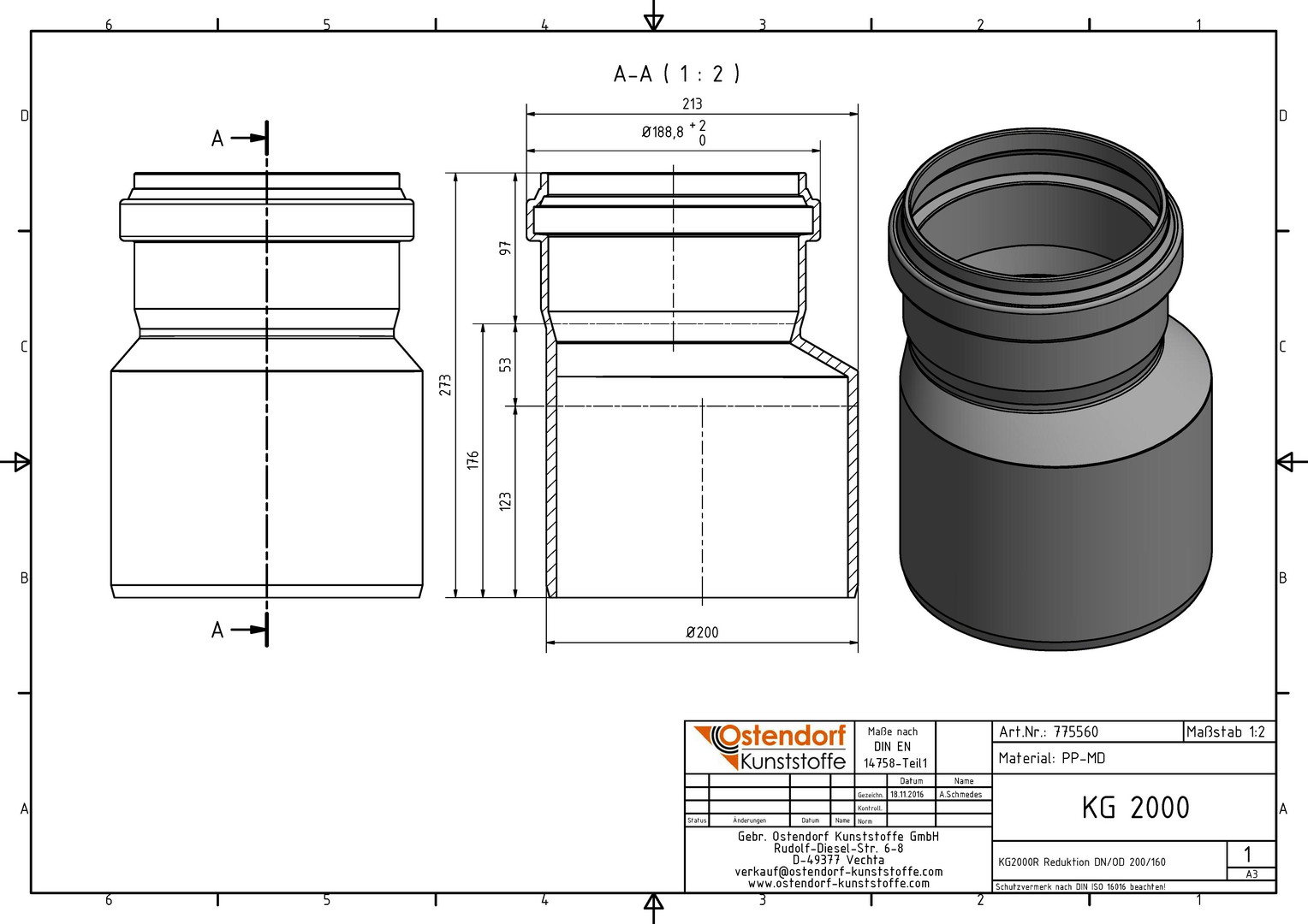 Ostendorf KG2000 Reduktion R DN/OD 200/160, exzentrisch