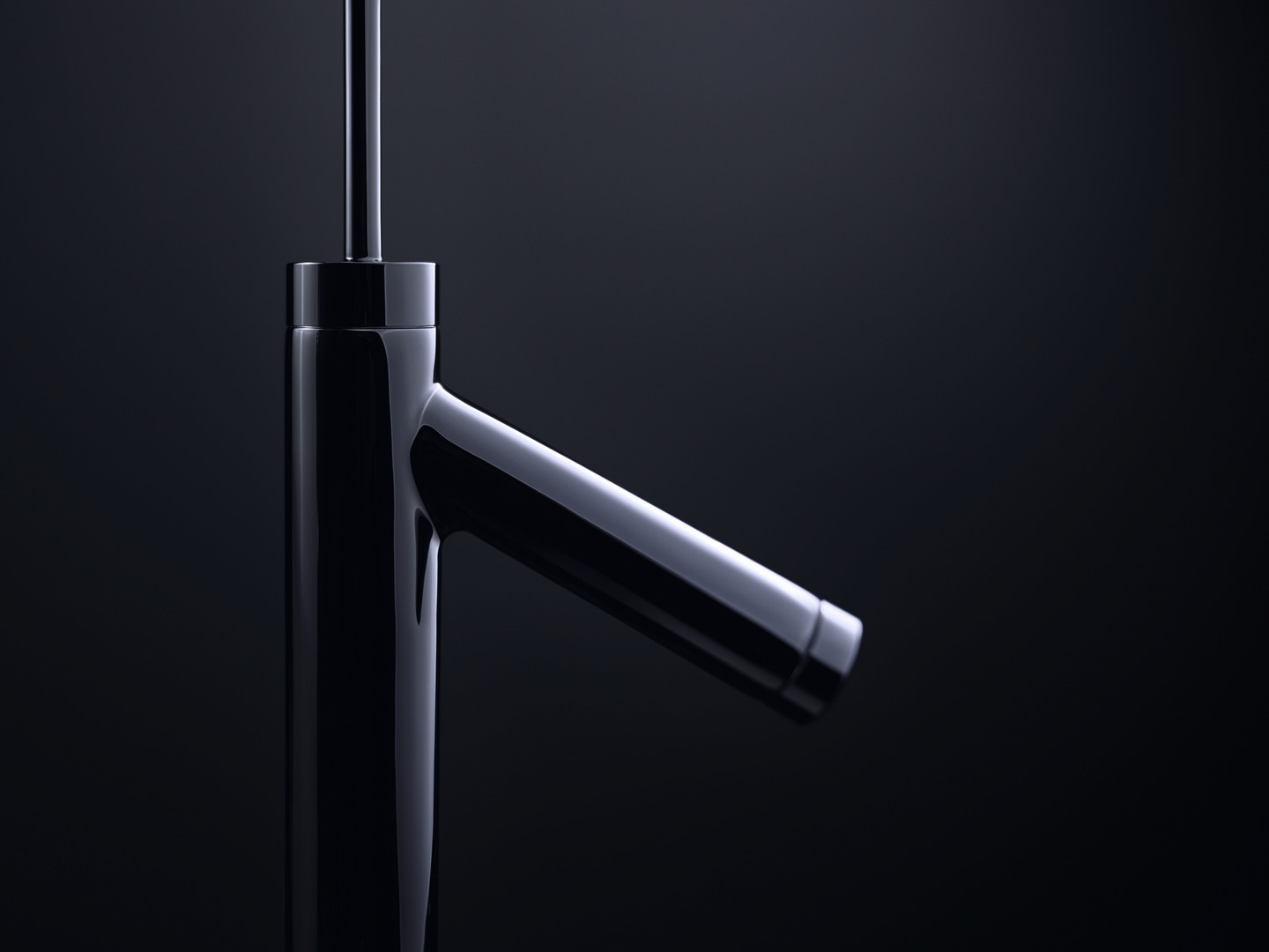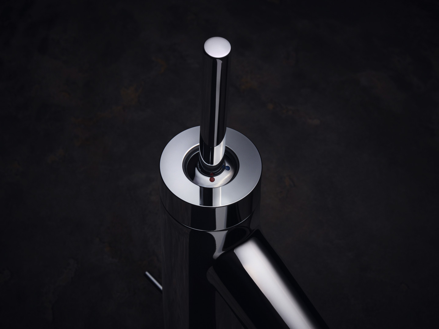 hansgrohe Waschtisch-Einhebelmischer 90 Axor Starck Ausladung 112mm, mit Pin-Griff, mit Zugstangen-Ablaufgarnitur, chrom