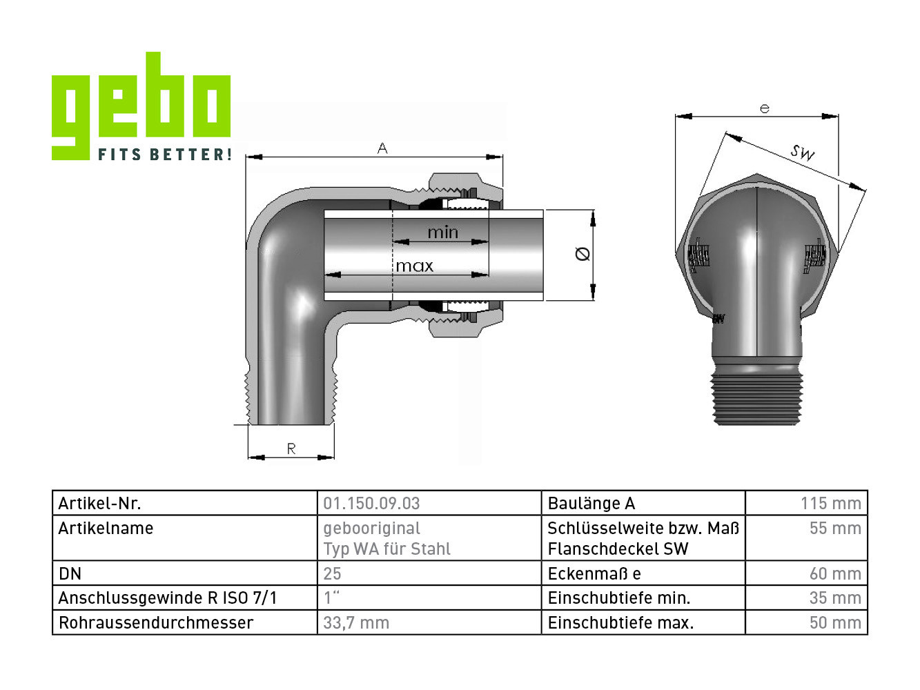 Gebo Verschraubung WA Serie 150 1" x 33,7 mm, für Stahlrohr